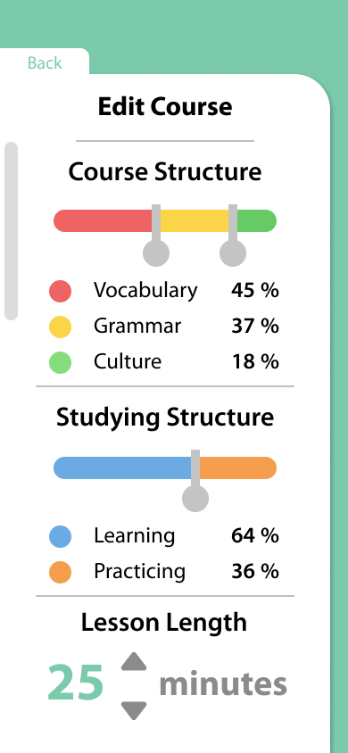 I created this project using Figma and Artboard Studio’s Figma plugin to create phone mockups of the final result. The course can be customized for each language the user is learning, and the user can choose how frequently they expect to study in a week’s period, as well as which days they can study. They can also adjust the type of content they will receive throughout the course.